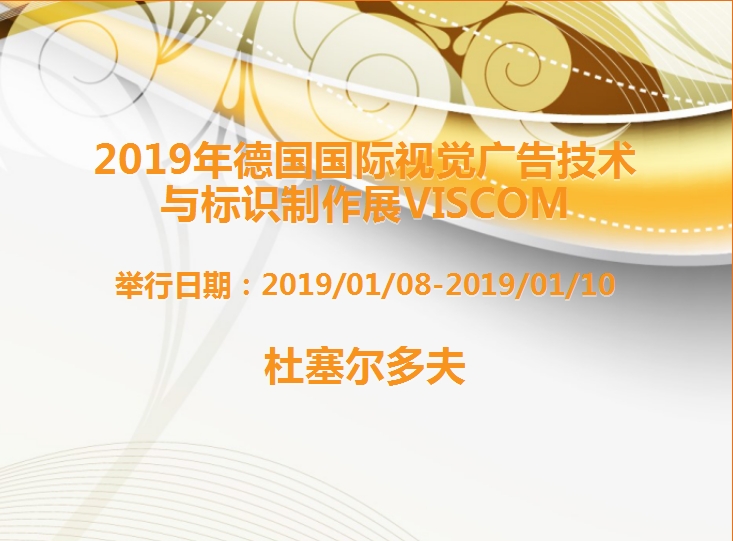 德國視覺傳播與廣告標識展Viscom是經(jīng)過國際展覽聯(lián)盟UFI認證的專業(yè)廣告標識類展覽會,也是歐洲有知名度和影響力的廣告標識類專業(yè)展覽會之一。2019年開始德國VICOM時間改到每年的1月份在杜塞爾多夫舉辦,同期舉辦的還有德國廣告用品展PSI。2017年有來自25個國家的250多家參展商,其中中國展位面積為485平米,接待了71個國家的10000多名觀眾。對展會的效果表示滿意,并紛紛表示會繼續(xù)參加 2019年的展覽會。