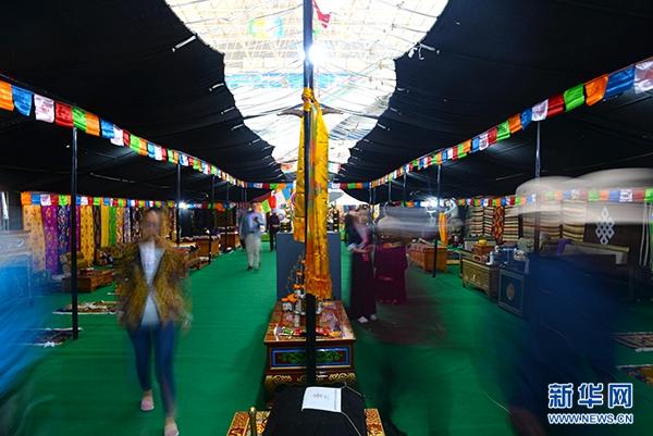 在玉樹展區的牦牛毛帳房內,從藏毯到牛毛氈、從絲綢制品到麻布披肩、從藏族群眾餐桌上的美食再到居家用品小裝飾等一應俱全,琳瑯滿目的特色產品展示著藏族群眾的生活習慣以及文化特色。