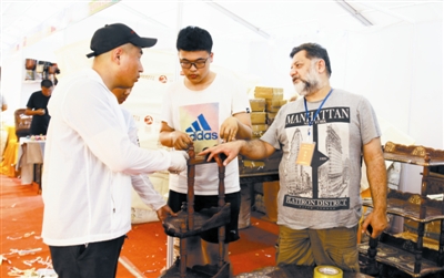與馬天雨同來(lái)的,還有同學(xué)王天一,“擔(dān)心遇到生僻詞,我提前在手機(jī)上下載了英語(yǔ)翻譯軟件,到目前為止,還沒(méi)派上用場(chǎng)。”他謙虛地表示,自己的口語(yǔ)在學(xué)校里只能算一般水平。其實(shí),他流利的口語(yǔ),已經(jīng)讓不少人投來(lái)羨慕的目光。忙里偷閑,來(lái)自巴基斯坦的邁克與記者聊了幾句,“我是第三次來(lái)中國(guó),之前去過(guò)成都和昆明參展,收獲都挺好。”他說(shuō)經(jīng)營(yíng)的花梨木家俱從自己的國(guó)家遠(yuǎn)道運(yùn)來(lái),由于是手工制品,價(jià)格也貴些。