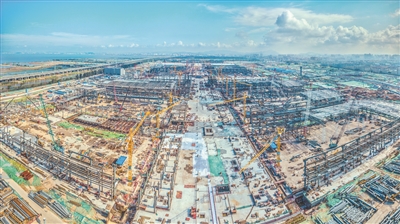 廣州日報深圳訊 (全媒體記者軒慧攝影報道)由中建鋼構制造安裝的全球最大會展中心雛形初現,深圳國際會展中心項目(一期)為全球房屋建筑領域之最,總用鋼量達27萬噸,截至目前已完成18.1萬噸鋼結構安裝,是北京“鳥巢”的5倍。