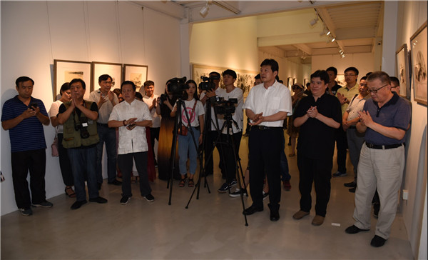 崔曉東在開幕致辭中表示:“何陽以不同的技法和表現形式,將他對山水畫的思考和筆墨實踐展示給大家。他的焦墨作品渾厚華茲,水墨作品則清韻逸雅,展現在這里的每一幅畫都呈現出了音樂的律動、詩歌的境界。何陽借這些藝術題材與藝術形式,言說自已對大自然和生活狀態的體悟,這是他藝術前進路上的嘗試。”