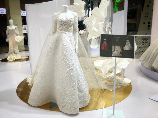 端午假期,上海浦東世博展覽館里熱鬧非凡,館內匯集了時尚婚紗禮服品牌的精品店GK BRIDAL、婚紗禮服品牌集合店Top Bridal、臺灣設計師品牌WTC及設計師品牌Movous Couture等多個高定婚紗品牌,陳列了包括The Atelier聯合著名鞋履設計師Jimmy Choo參與設計的婚紗,素有“侈奢禮服鼻祖”之稱的Zuhair Murad的高定禮服、SAIID KOBEISY的婚紗及Mikael D的20件精美絕倫的婚紗,其中,中國高定時裝設計師勞倫斯·許帶來的張歆藝結婚時所穿的兩套共價值百萬的白紗以及改良中式嫁衣,還有曾驚艷巴黎高定婚紗大秀,被譽為“全球最美婚紗”的作品《盛世白蓮》更是吸引了眾多新人駐足觀賞,拍照留戀。