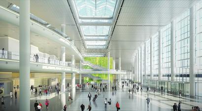 除了展覽中心,西部新會展中心還配套了高標準的3萬平方米會議中心和46層的星級酒店,能夠同時接待2000人以上開會就餐,酒店擁有900多間客房,將集展覽、會議、就餐、住宿、購物于一體。