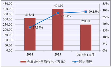 圖6 2014-2016年6月我國會展行業企業年均收入