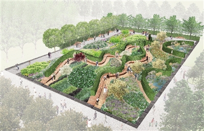美國設計師喬治·哈格里夫斯為自己的設計理念命名為“和而不同的植物世界”。會展園將劃分為四個“地域特色展示區”,展示中國與美國不同抗寒帶分布的植物,。以植物為媒介,充分表達了中美園藝文化的地域特征,闡釋了“和而不同”的主題。此外,會展園設計采用雕塑形樹籬,分割出不同區域,空間互相滲透,路徑交織有趣,景觀步移景異,使游客能夠與花園互動,進行充分探索。