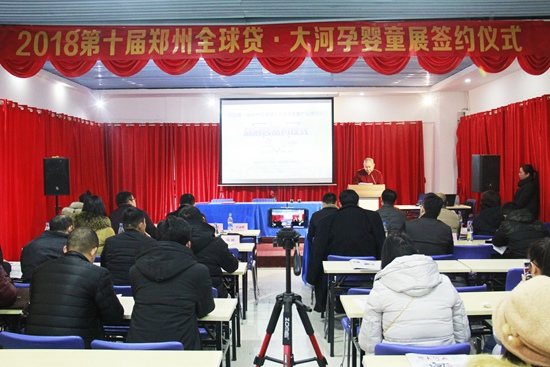 12月29日上午,由河南省新國際會展管理有限公司主辦,河南中童國際會展服務有限公司、大河孕嬰童聯盟、環球財富(北京信息科技有限公司)聯合承辦的2018第十屆鄭州全球貸·大河孕嬰童產品博覽會總冠名簽約儀式正鄭州嘉祥城隆重舉行。