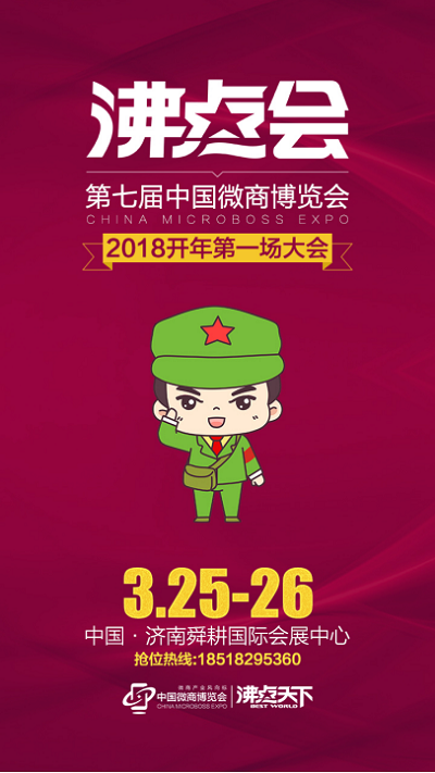 2018沸點會(春季)暨第七屆中國微商博覽會將在百花盛開的春天舉行,期待3月25——26日與你再聚濟南,見證微商盛事!