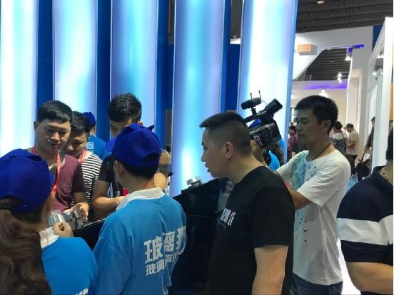 在下午時分,展會人流量達到巔峰,玻璃狗的超高人氣引來了廣州電視臺記者的采訪。記者對玻璃狗CEO 戴家保進行了對話訪談,戴總作為玻璃狗的掌門人精簡地闡述了玻璃狗此次參展的目的及目前收獲成果。