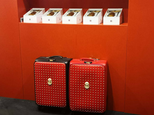 1月28日,法蘭克福,故宮博物院展示的門釘箱包。(新華社記者邵莉攝)