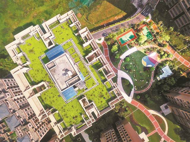 在位于兩江新區悅來的嘉悅江庭居住小區,樓頂進行了輕量化的屋頂綠化處理。整個小區通過進行海綿城市建設,夏天的氣溫可比常規小區低3℃。 記者 張錦輝 廖雪梅 攝