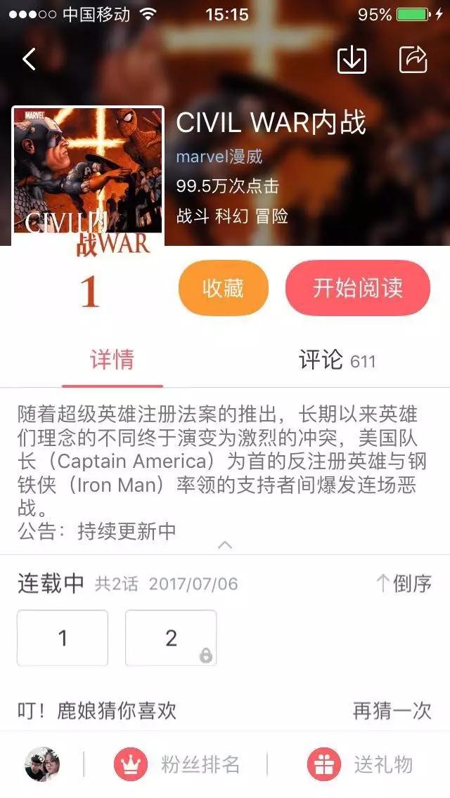 現在,《內戰》已經在網易漫畫上漢化連載,更新到第二話,已經有近100萬次的點擊量。