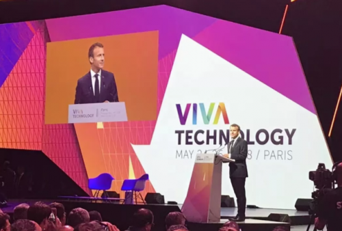 法國總統馬克龍在 Viva?。裕澹悖琛∵M行演講