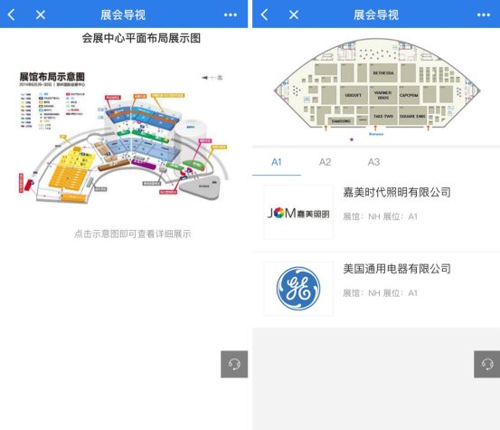 3.展會(huì)導(dǎo)視功能:展會(huì)舉辦所在的會(huì)展中心的布局示意圖,以及每個(gè)場(chǎng)館的展商平面分布圖。
