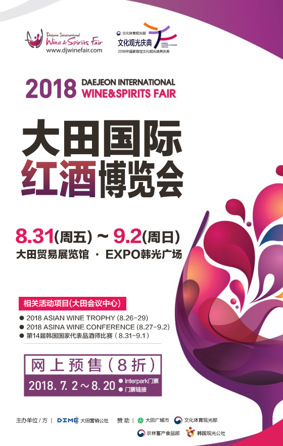 第5屆大田國際紅酒博覽會將于8月31日至9月2日在大田會議中心和大田貿(mào)易展覽館舉行。大田國際紅酒博覽會是迄今為止韓國唯一的紅酒主題國際會展,同時連續(xù)三年被韓國文化體育觀光部評選為"地區(qū)特色會展"。