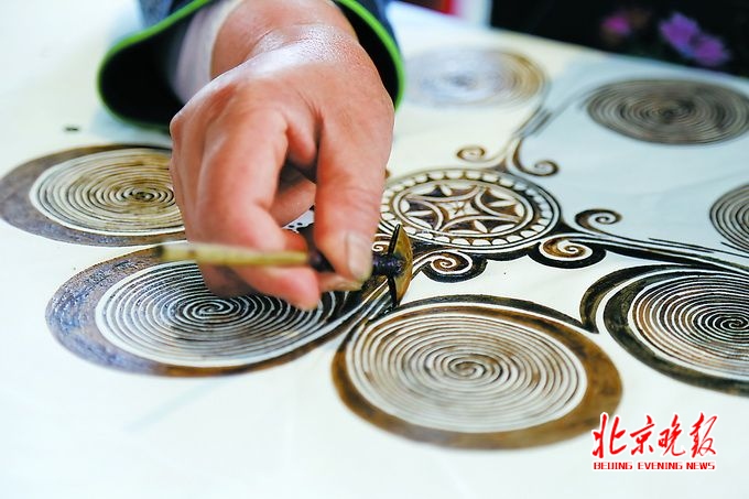 如今,阿板大姐繼承了婆婆的衣缽,成為“苗族蠟染技藝”省級非遺傳承人。她這次在京展出的蠟染佳品里,別錯過欣賞“窩妥”這種貴州丹寨蠟染傳統(tǒng)紋樣,它是由八個漩渦紋成幾何狀組合在一起,對稱的雙螺旋窩妥紋寓意著生生不息。還有她繪制的百蝶圖,生動無比,靈感來源于貴州苗族的古老傳說。