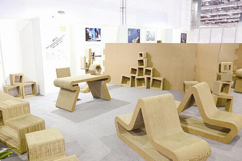 瓦楞紙板組成的沙發(fā)和茶幾造型時(shí)尚又舒適。資料圖片