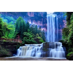 四面山的瀑布最為壯四面山 觀。有大小瀑布100多處。瀑布傾瀉激蕩,掀起滿天煙霧,轟然鳴響,數里之外也能感受到其威勢。望鄉臺瀑布高152米,寬40米,居我國高瀑之首;水口寺瀑布高94米,懸掛在一個天然洞穴之下,景象奇特;鴛鴦瀑布比翼齊飛,撩人遐思。四面山原始綠闊葉林帶在同緯度中保存較好,其中屬國家級重點保護動物16種,省級保護動物8種,為我國“物種基因的寶庫”